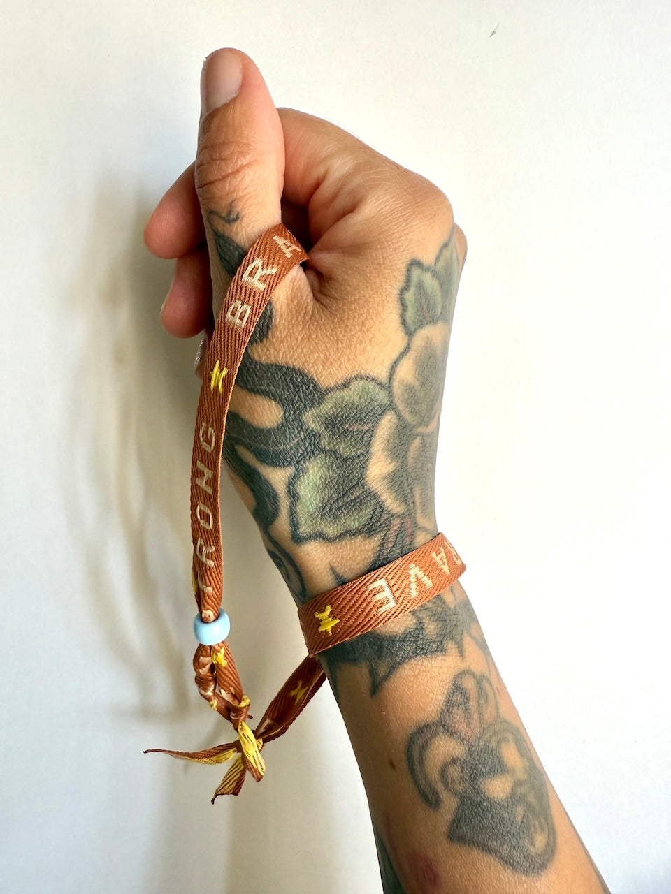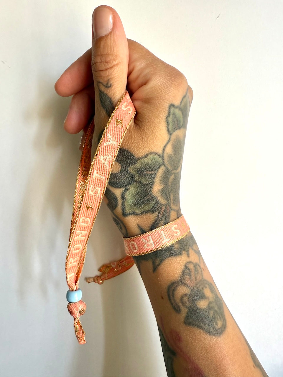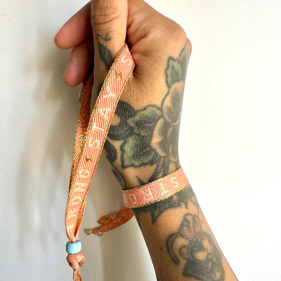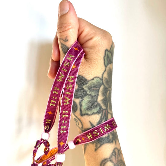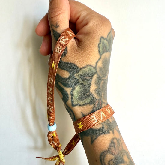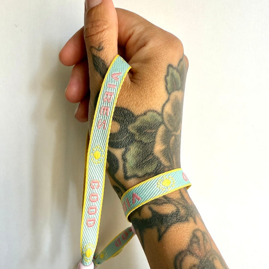 Ogni bracciale ha ricamata una frase, un'intenzione di crescita e iglioramento spirituale!