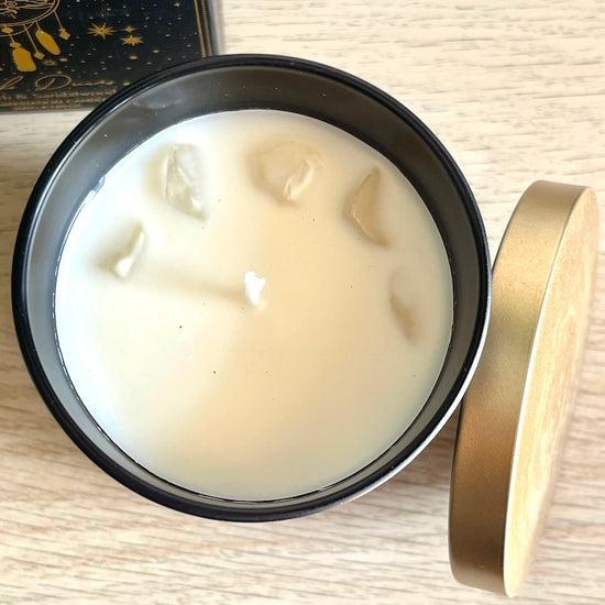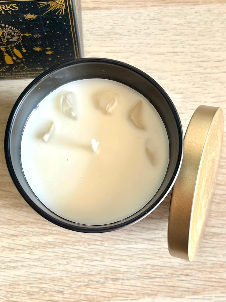 Candela d'intenti “Manifestazione” Cristallo di rocca al profumo di Mirra e Sandalo