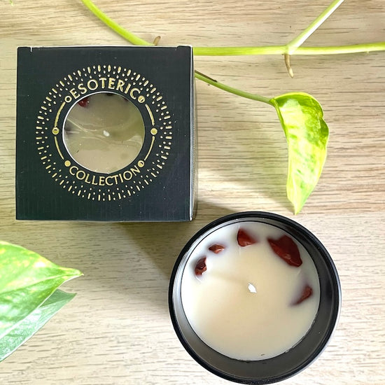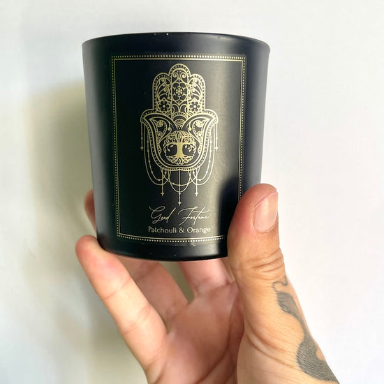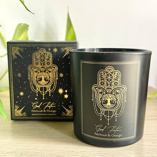 Candela "Good Luck" con Diaspro rosso profumo Patchouli e Arancia
