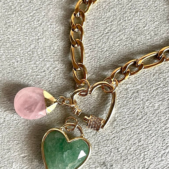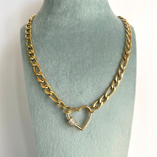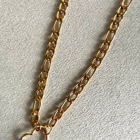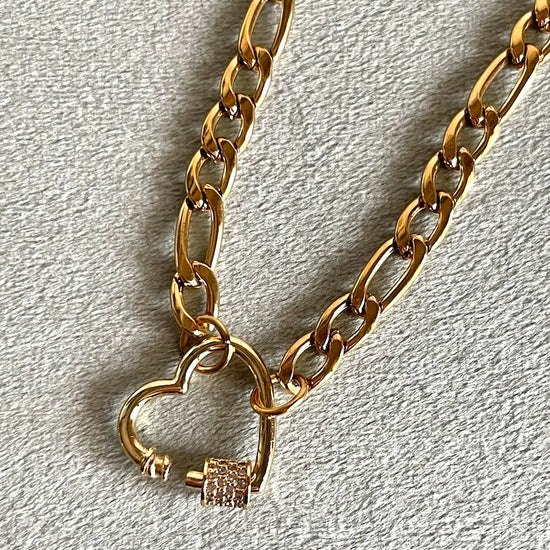 Collana modello "Figaro" con moschettone porta ciondoli a cuore