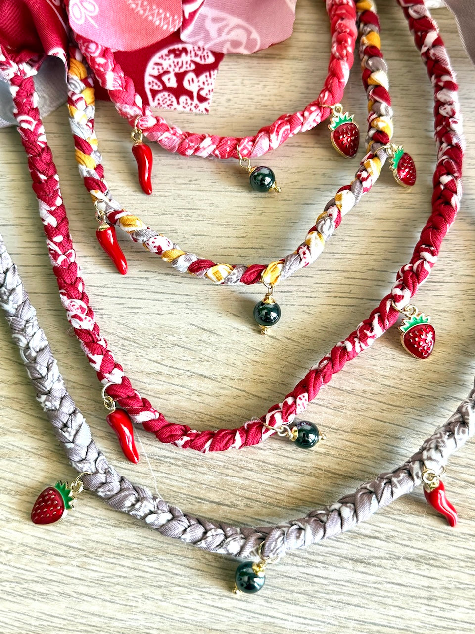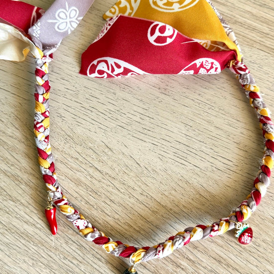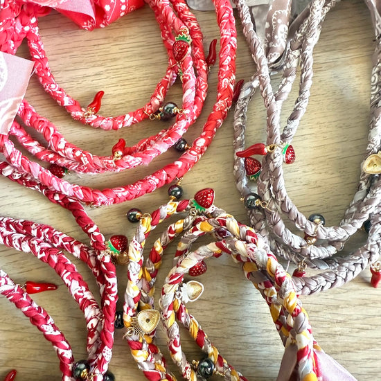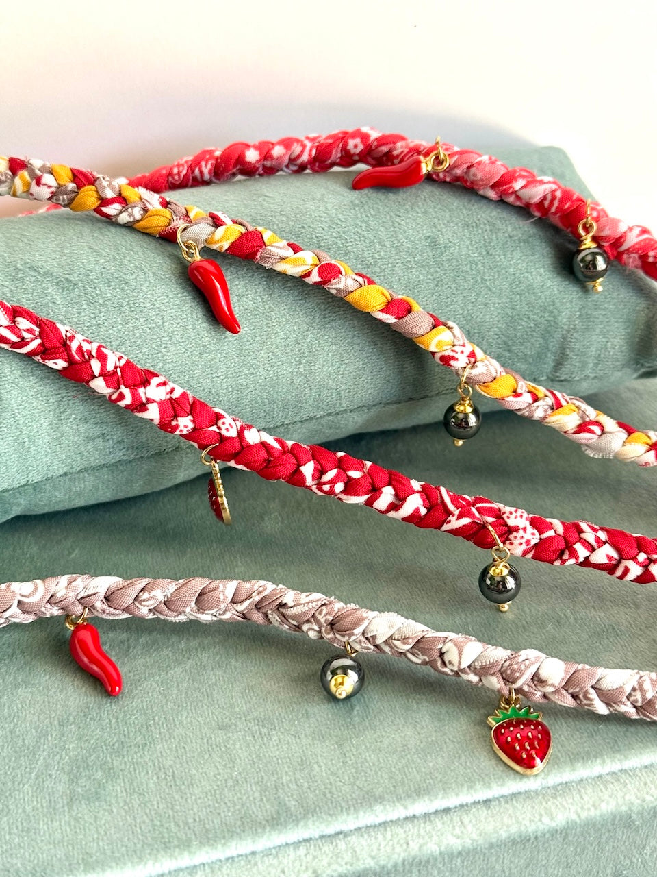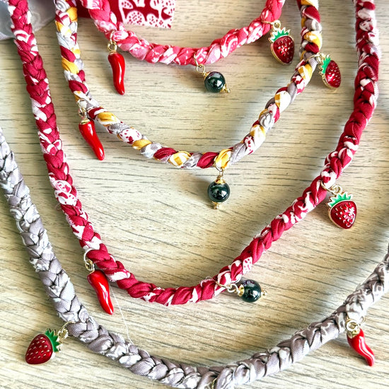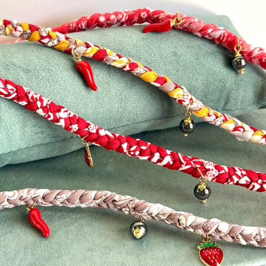 Aggiungi un tocco di stile e significato al tuo look con la nostra cavigliera intrecciata a mano con bandana colorata. Un gioiello unico che racchiude tre simboli speciali: