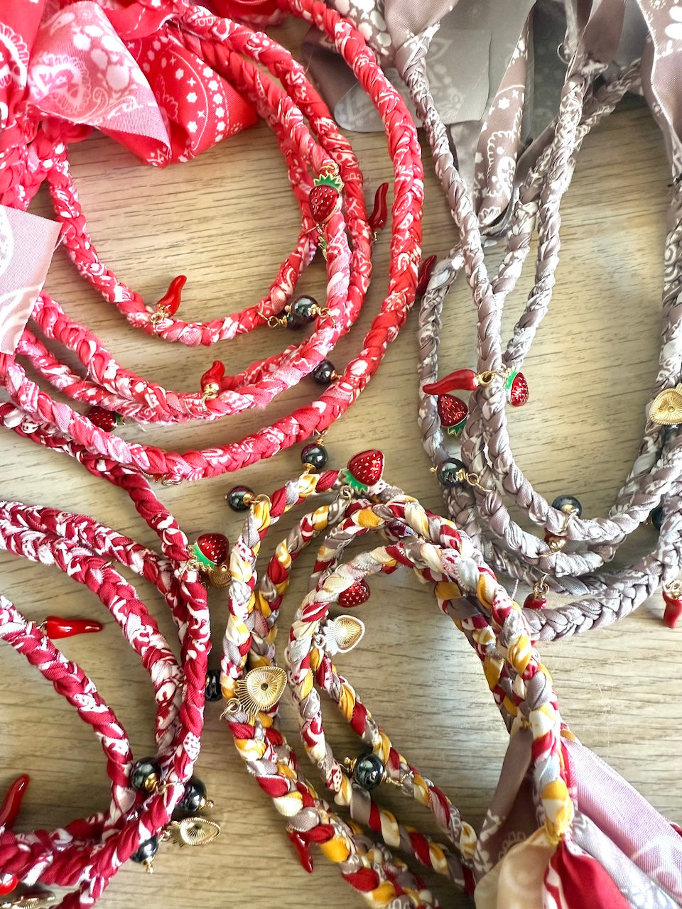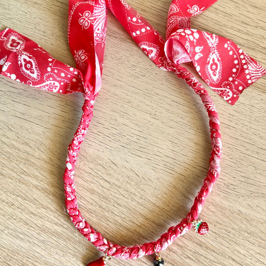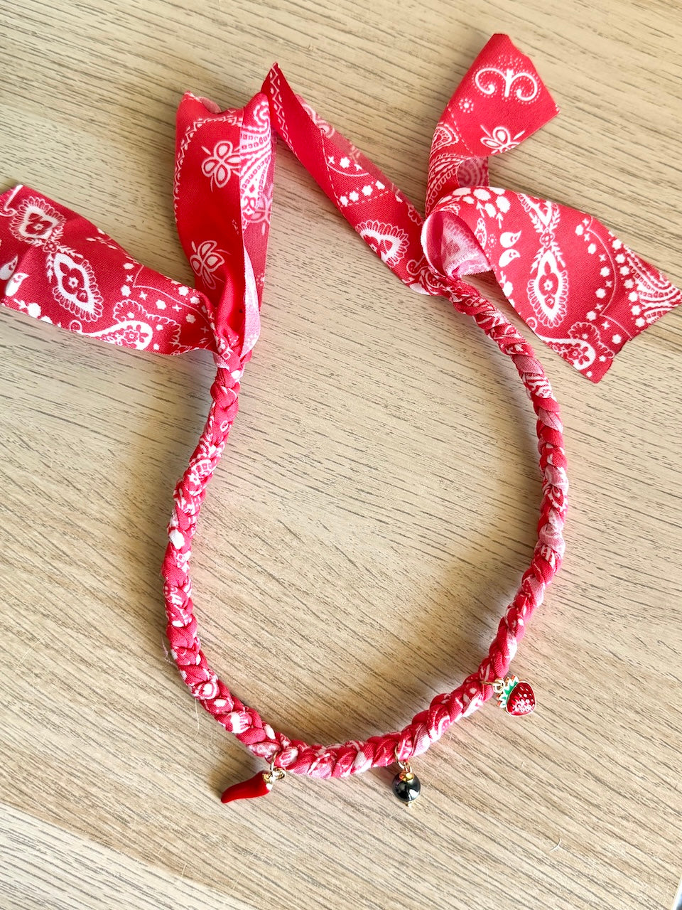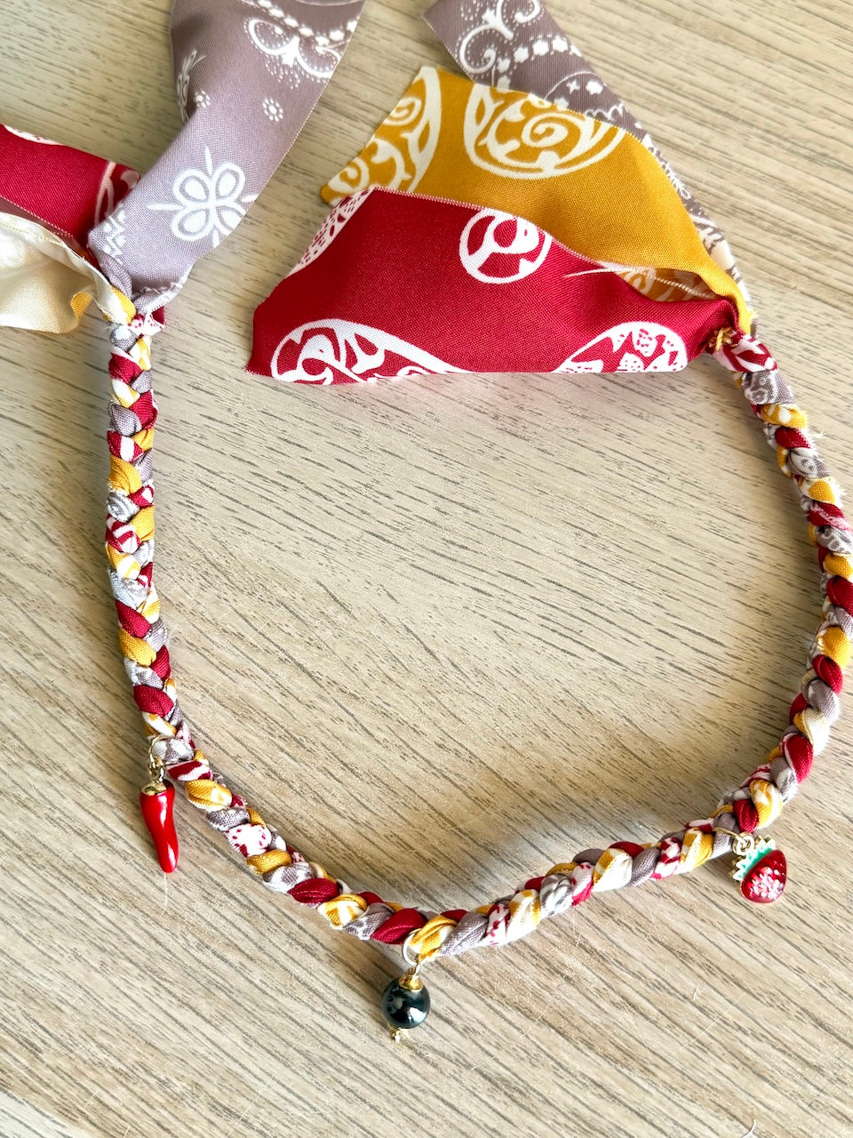 Aggiungi un tocco di stile e significato al tuo look con la nostra cavigliera intrecciata a mano con bandana colorata. Un gioiello unico che racchiude tre simboli speciali: