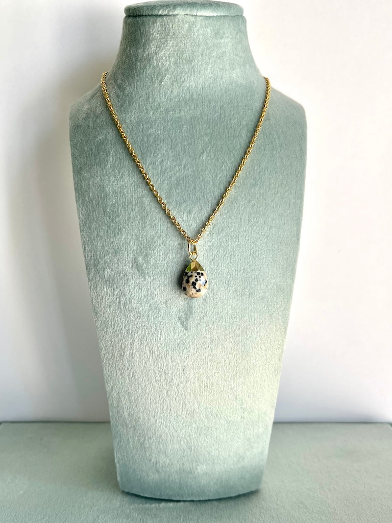 Ciondolo in Diaspro dalmata -Riflessione - Effetto Calmante