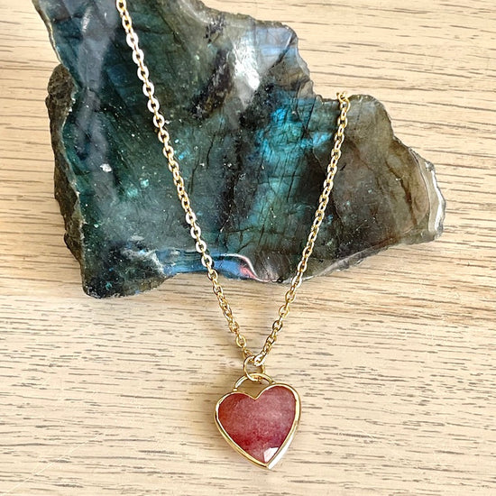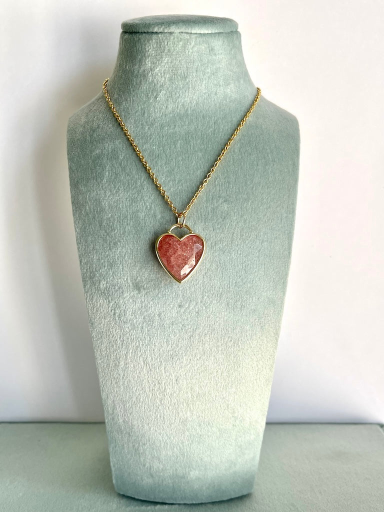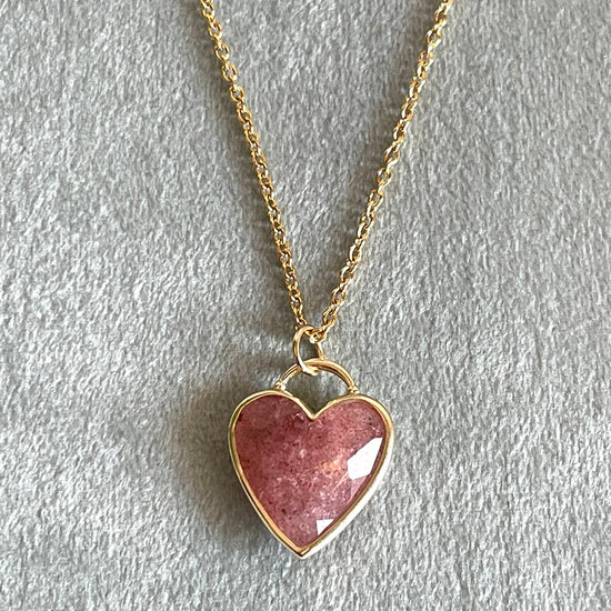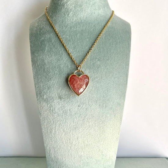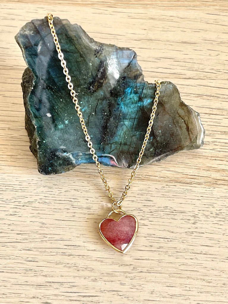 Ciondolo a cuore in Quarzo fragola con catenina - Buon umore