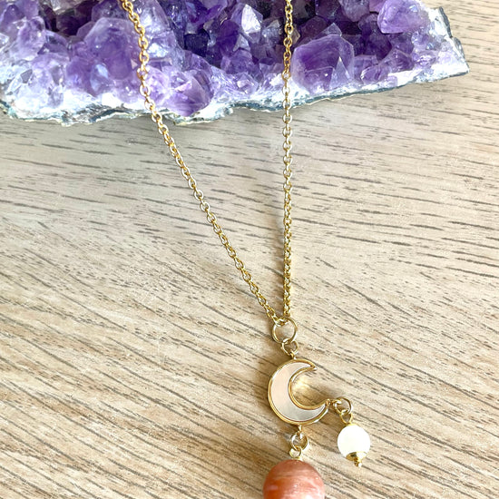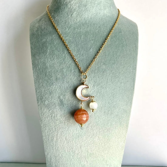 Ciondolo Moon - Pietra di Luna - Selenite - Madreperla -