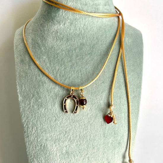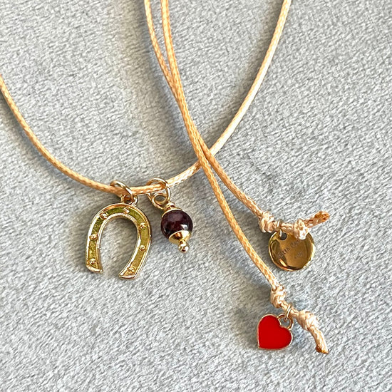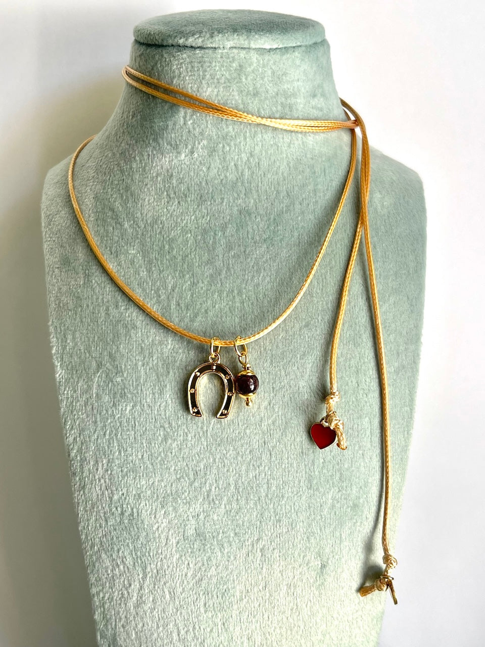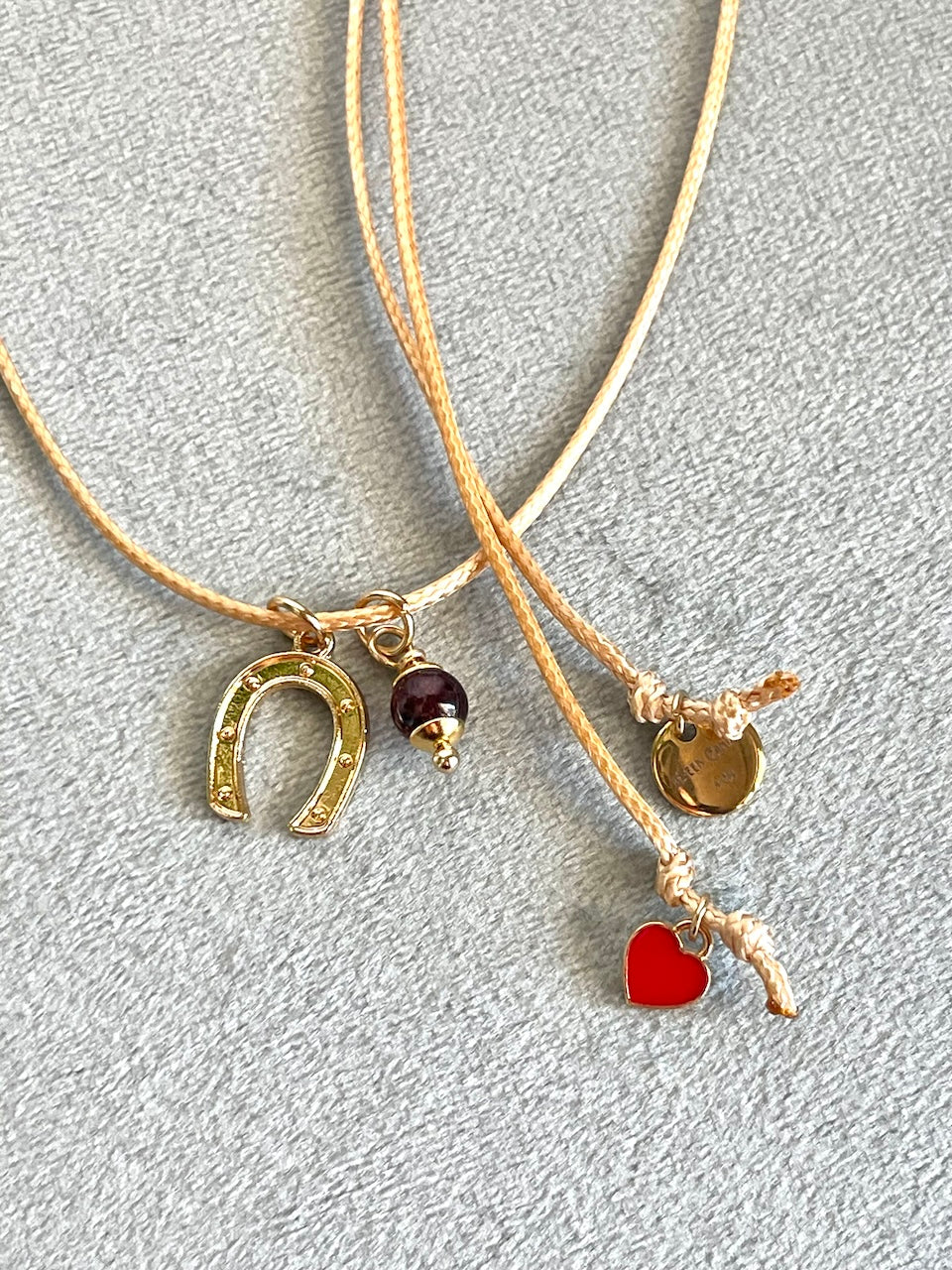 La collana è realizzata con un filo di seta lungo 100cm, non ha chiusura, basta un fiocco!