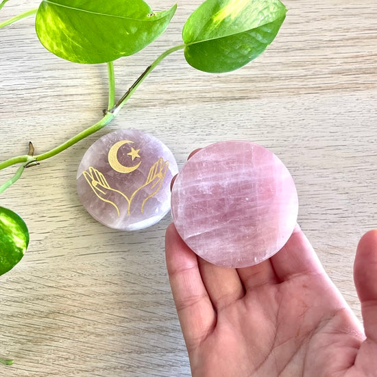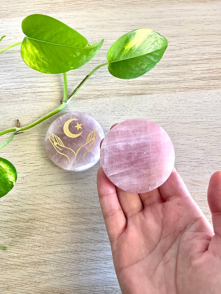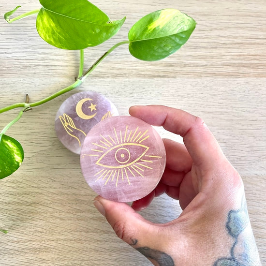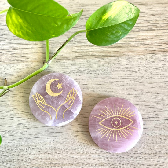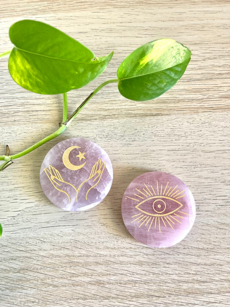 Disco in Quarzo rosa 2 simboli disponbili: Cura e protezione - Occhio onniveggente
