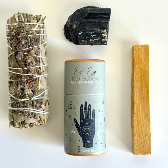 Kit Protezione Energetica – Tormalina Nera, Smudge, Palo Santo e Olio Essenziale