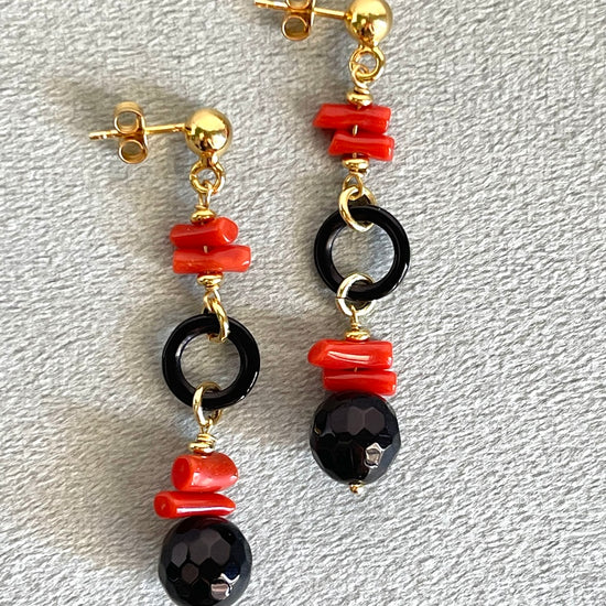 Orecchini con Onice e Corallo - Equilibrio e abbondanza
