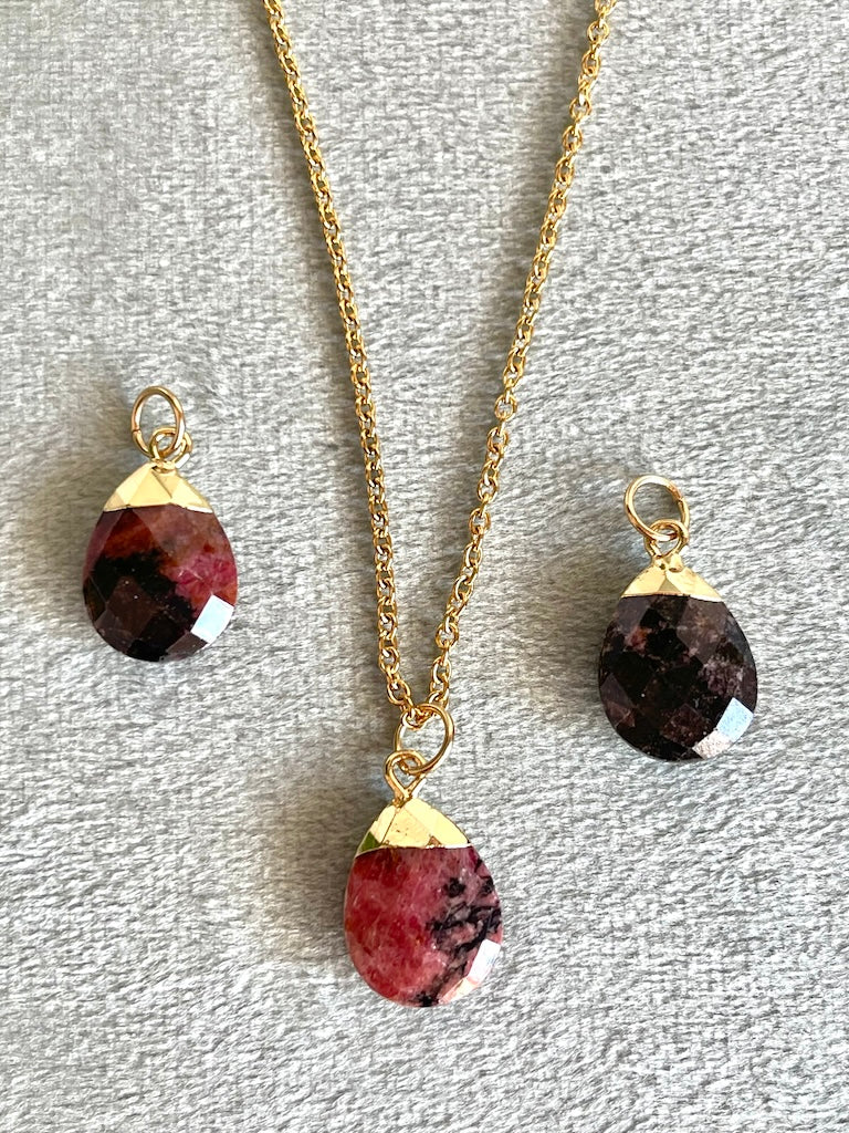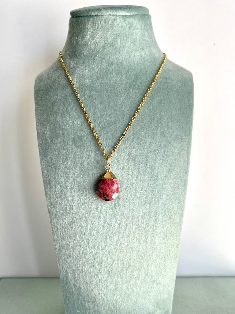 Ciondolo a goccia in Rodonite - Fiducia e Amore per sé stessi - Energia fisica ed emotiva - Guarigione interiore-