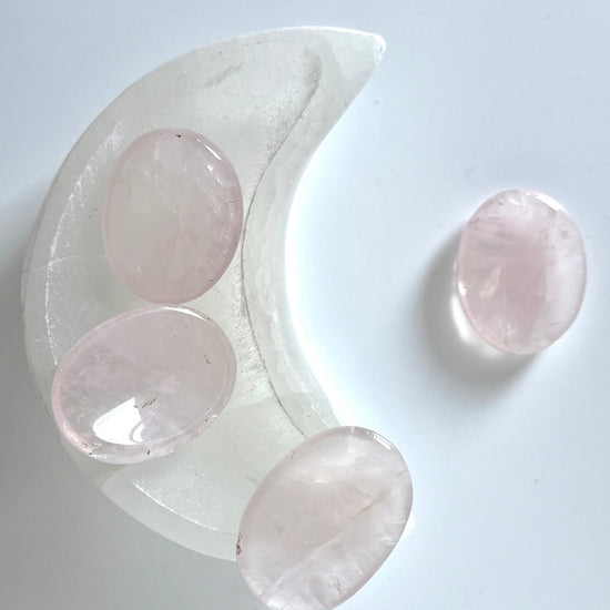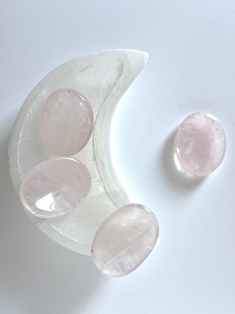 Quarzo Rosa Burattato, Grezzo, Uova, Palmstone e Pietre del sollievo-Gioia e luce interiore-