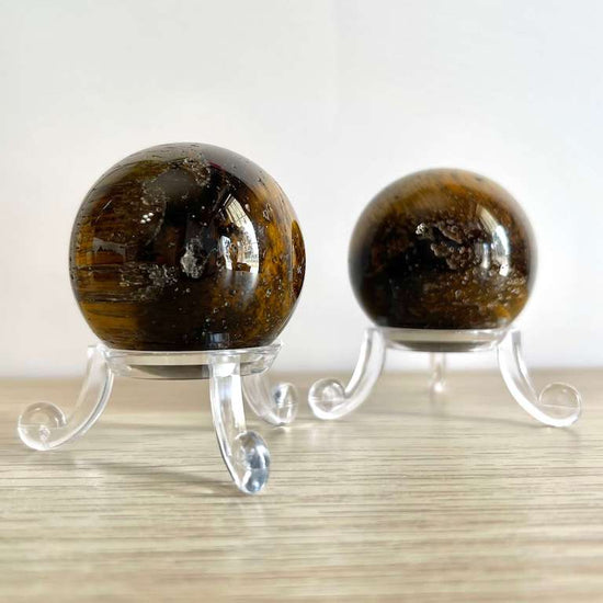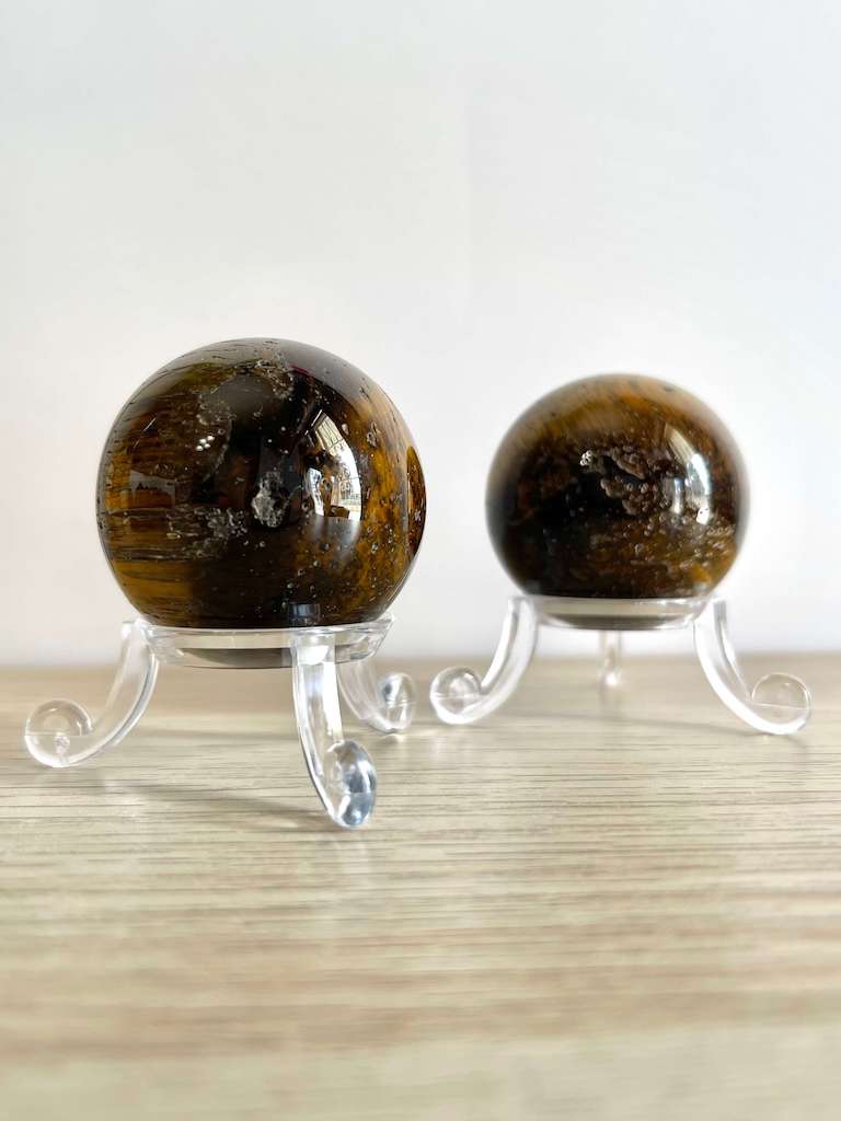 Nel pacchetto troverai 1 sfera in Occhio di tigre, la base e le proprietà.